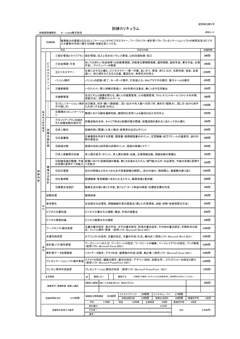【申込方法】ハローワークにて受講希望を申し出て受講申込書をもらって記入してください。記入後、ハローワークにて受付印をもらい、弊社(鹿児島市山下町12-5藤崎ビル201号室)へご持参または郵送お願いいたします。